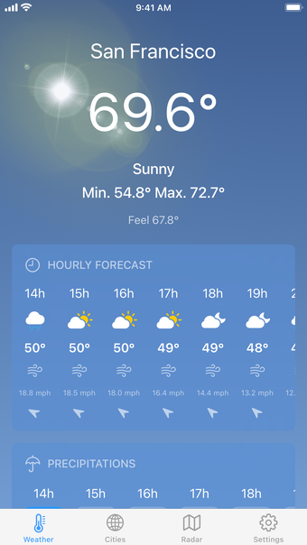 Weather richiede iOS 16.4 e versioni successive. La versione attuale dell'app è 3.0.22 e puoi eseguirla in francese, russo e svedese.